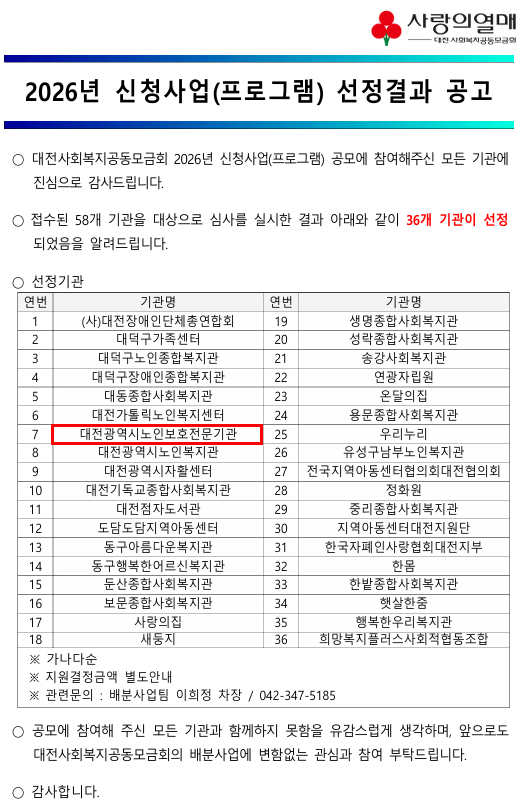 [공고] 대전사회복지공동모금회 2026년 신청사업 선정